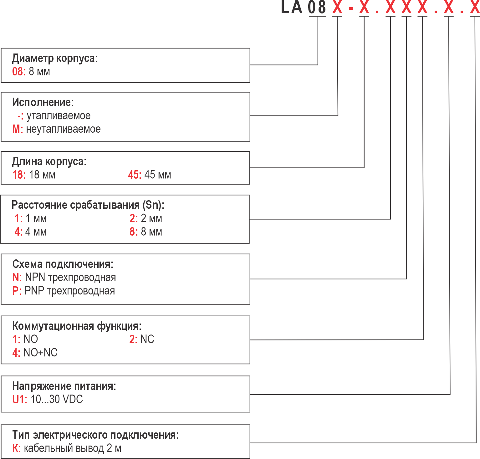 | PNP 4-проводная | NO+NC | LA30M-55.25P4.U1.К | |||