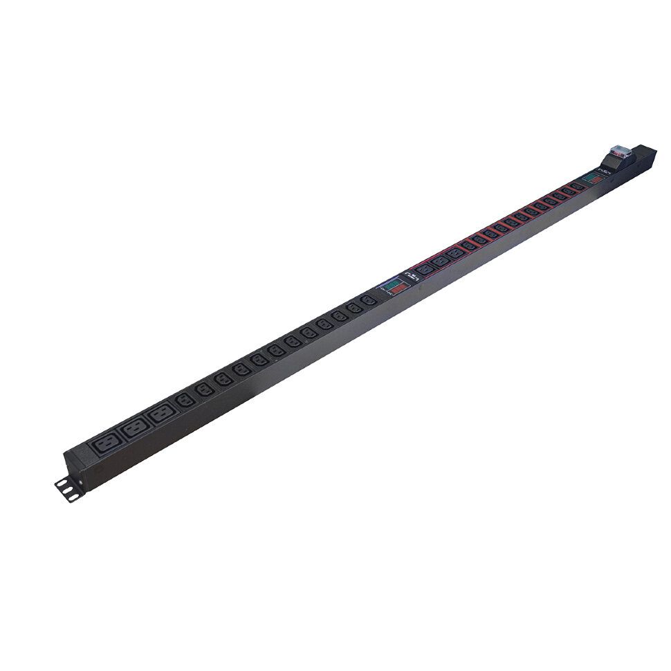 Блок розеток HIDEN однофазный вертикальный, 24 розетки С13, 6 розеток С19, 32A, авт. выкл. (2x16А), амперметр/вольтметр (2шт), кабель питания 3м (3х4мм2) с вилкой IEC 60309