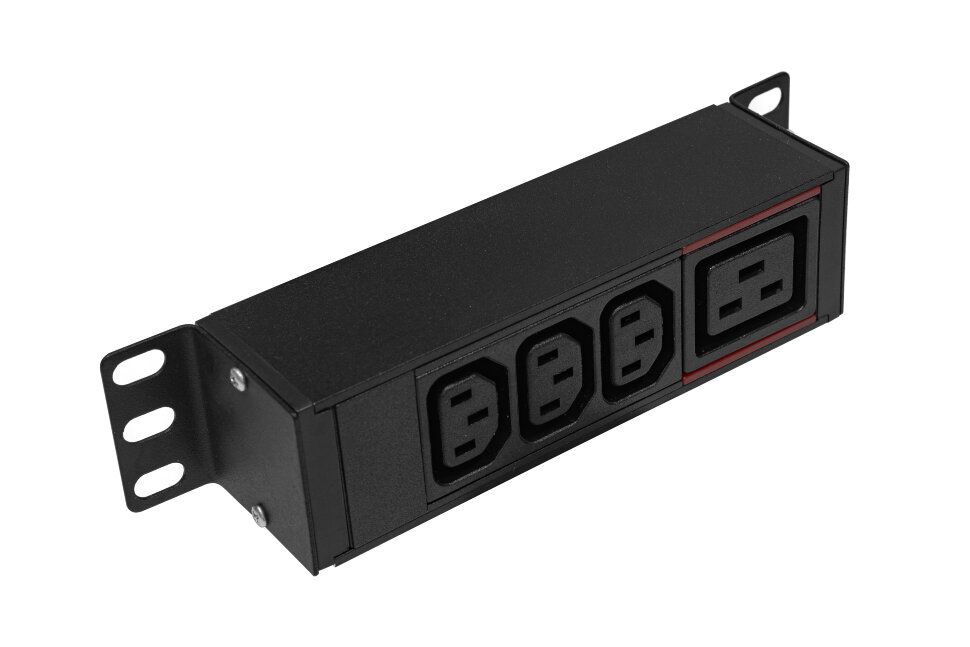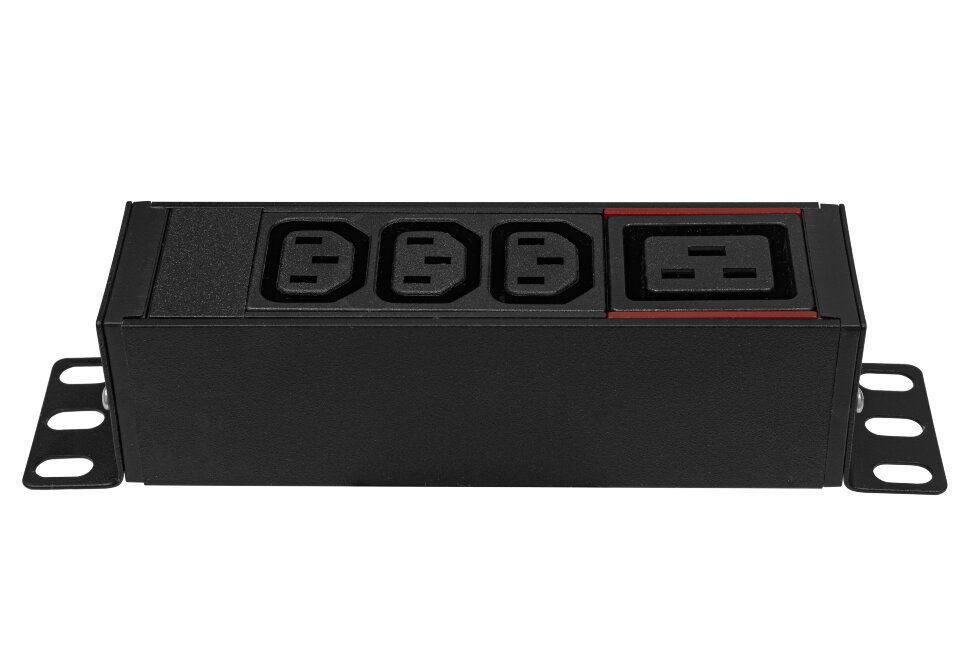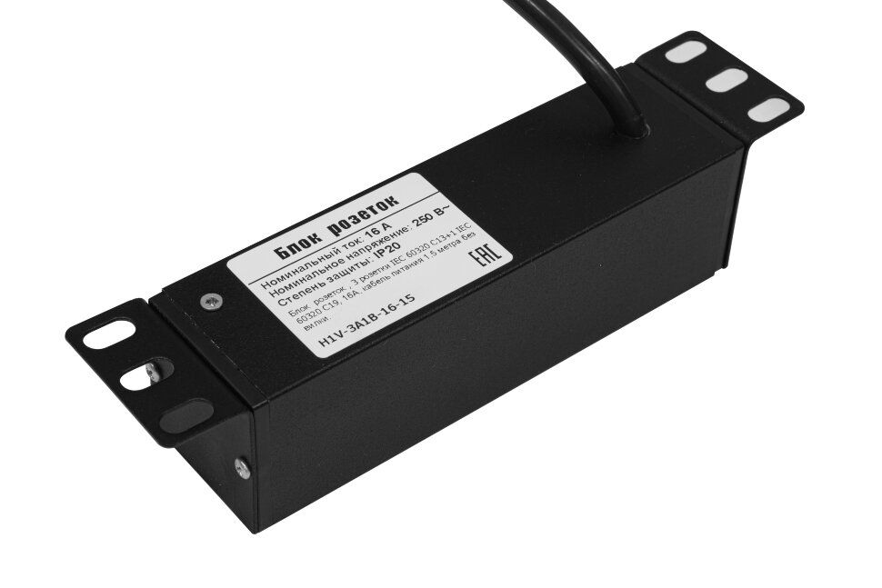 Блок розеток HIDEN однофазный вертикальный 3 розетки C13, 1 розетка C19, 16A, кабель питания 1,5м без вилки