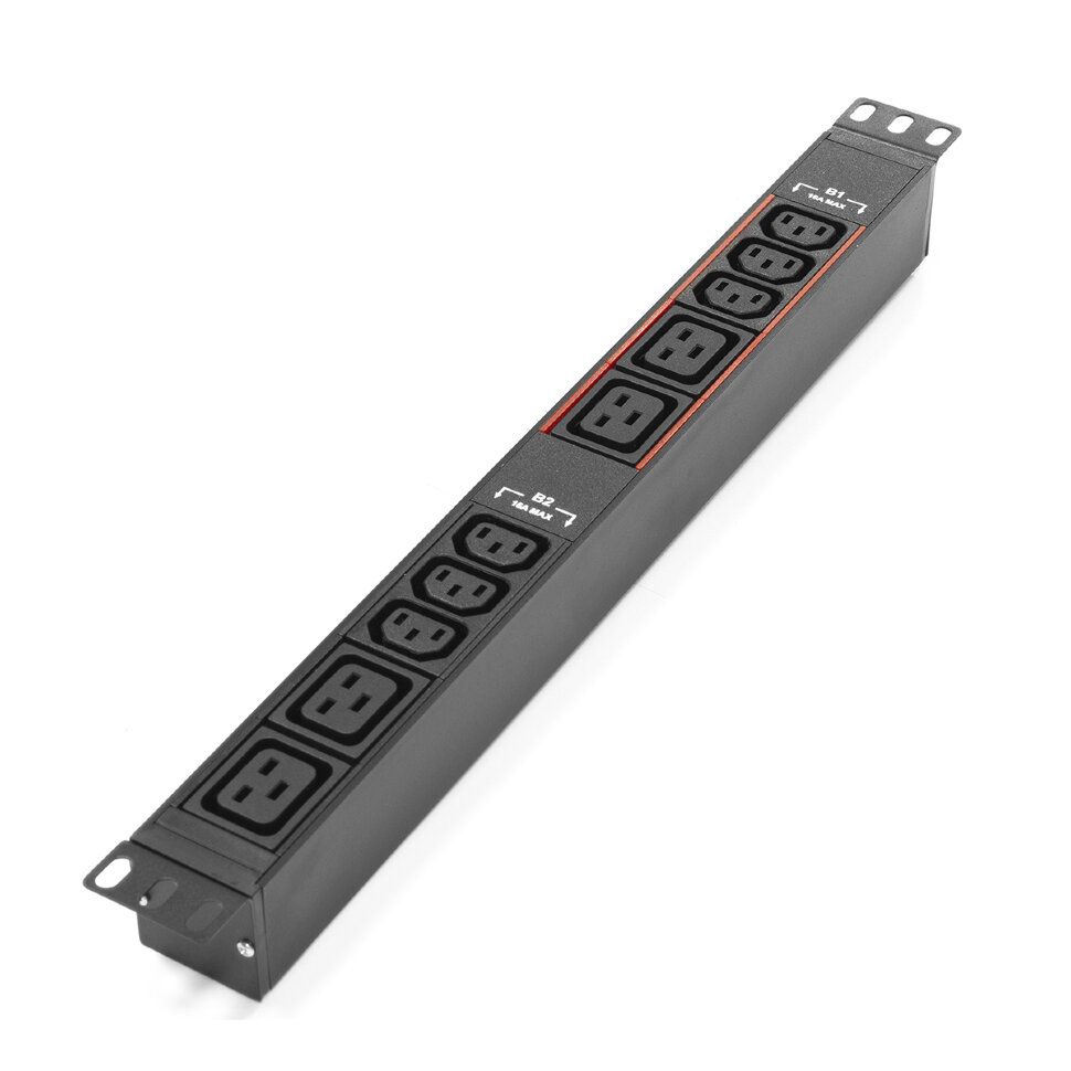 Блок розеток однофазный горизонтальный, 19", 6 розеток C13, 4 розетки C19, 32A, вход питания клеммный терминал