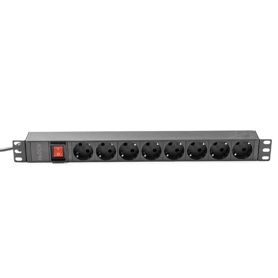 Блок розеток однофазный горизонтальный, 19", 8 розеток Schuko, 16A, выключатель с подсветкой, кабель питания 2м EU-Schuko