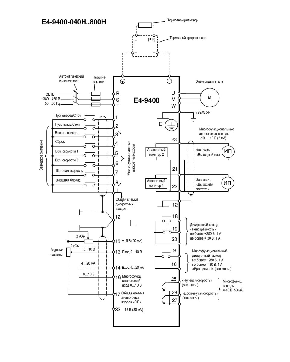 - Встроенный тормозной прерыватель (до 22 кВт включительно).
