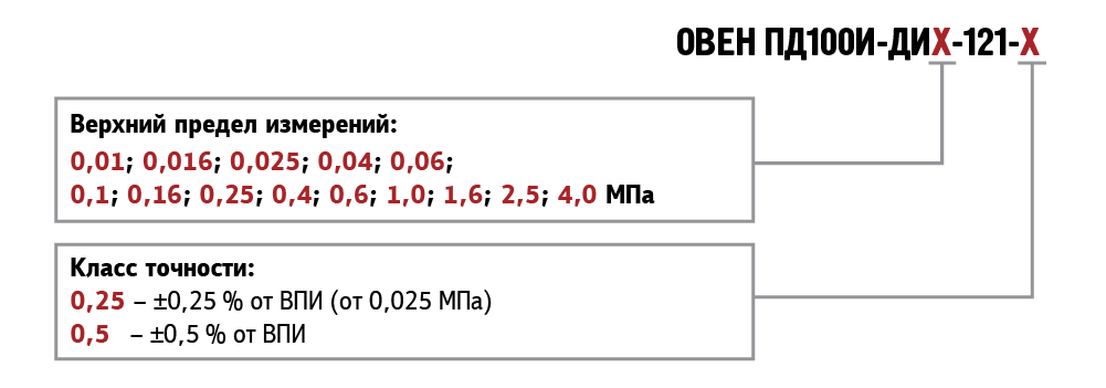 - Верхний предел измеряемого давления (ВПИ) – от 10 кПа до 4,0 МПа.