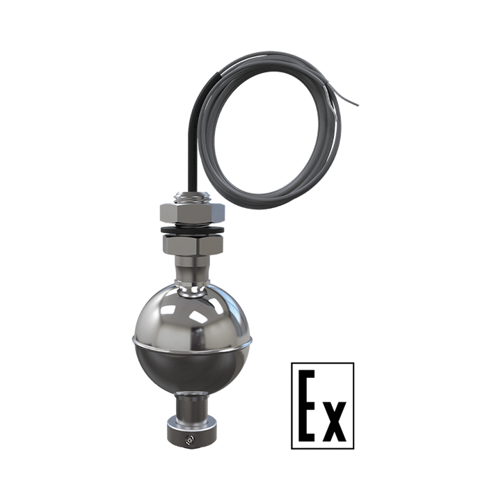 Поплавковый датчик ПДУ-3 во взрывозащищенном исполнении предназначен для сигнализации уровня различных жидкостей, включая светлые нефтепродукты, топливо, различные растворы, а также иные жидкие среды, в том числе агрессивные, за исключением коррозионно-активных к стали 12Х18Н10Т. Благодаря шарообразной форме поплавка датчик эффективно работает с вязкими жидкостями, не склонными к засыханию. Датчики уровня поплавкового типа устойчивы к пене и пузырькам в жидкости. Принцип работы основан на перемещении поплавка с магнитом по штоку и герконовом срабатывании контактов при прохождении поплавка мимо заданной точки. Датчик обеспечивает дискретную сигнализацию достижения жидкостью одного заданного уровня, что позволяет легко интегрировать его в системы автоматизации. Благодаря герметичному исполнению погружной части (IP68) и внешней части (IP65), датчик эффективно работает в условиях повышенной влажности.