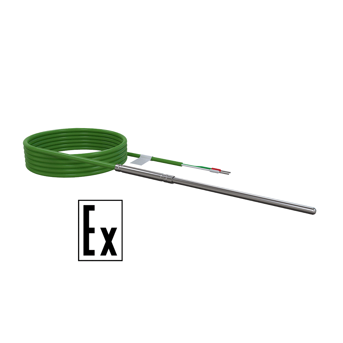 Термопары во взрывозащищенном исполнении, в отличие от датчиков в общепромышленном исполнении, применяются для измерения температуры взрывоопасных смесей газов, паров, а также легковоспламеняющихся и взрывчатых веществ. По техническим характеристикам схожи с термопарами в общепромышленном исполнении, но содержат в конце маркировки обозначение искробезопасной цепи: «ЕХI-ТХ», где вместо Х указывается температурный класс в маркировке взрывозащиты.