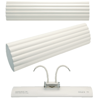 Вся поверхность излучения IRH/S также имеет выпуклую форму и покрыта белой глазурью. Такая форма является наиболее удачной для распределения излучения в помещении. Кроме того также учтены эстетические требования к оборудованию для оздоровительных помещений.