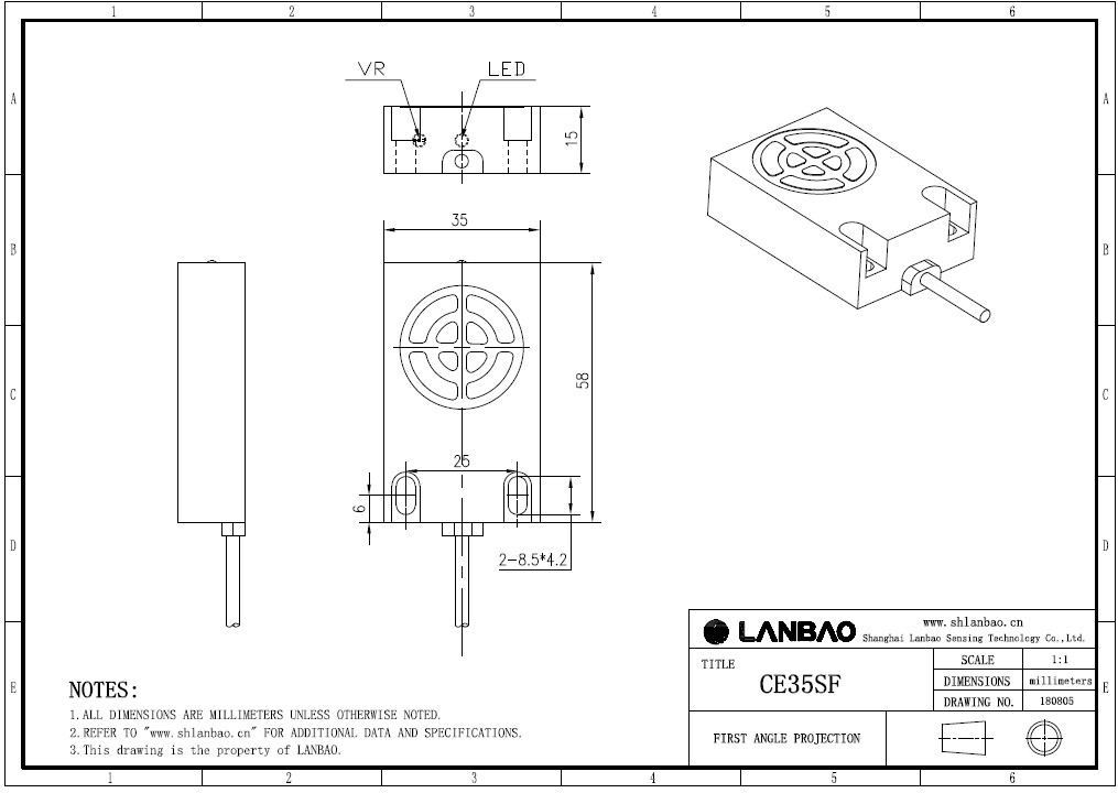 Емкостной датчик LANBAO CE35SF10DPO