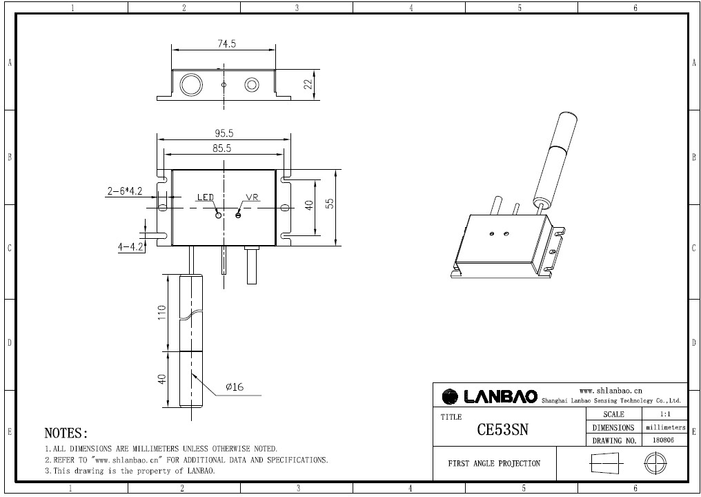 Емкостной датчик LANBAO CE53SN08MPO