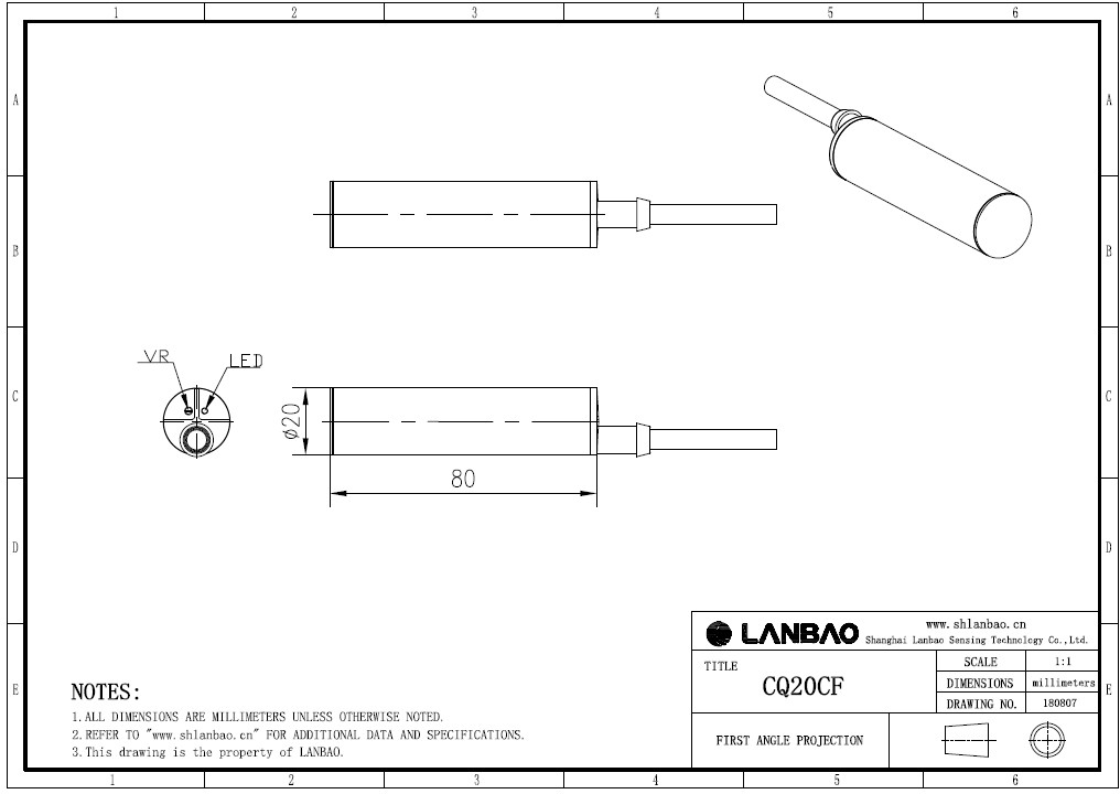Емкостной датчик LANBAO CQ20CF10DPO