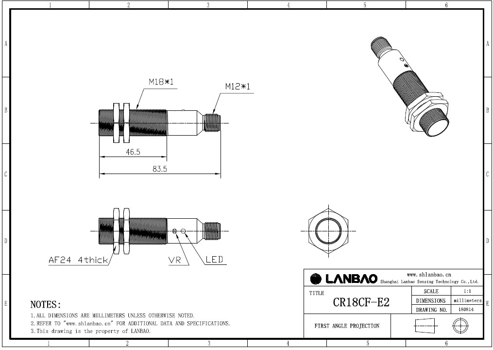Емкостной датчик LANBAO CR18CF05DPC-E2