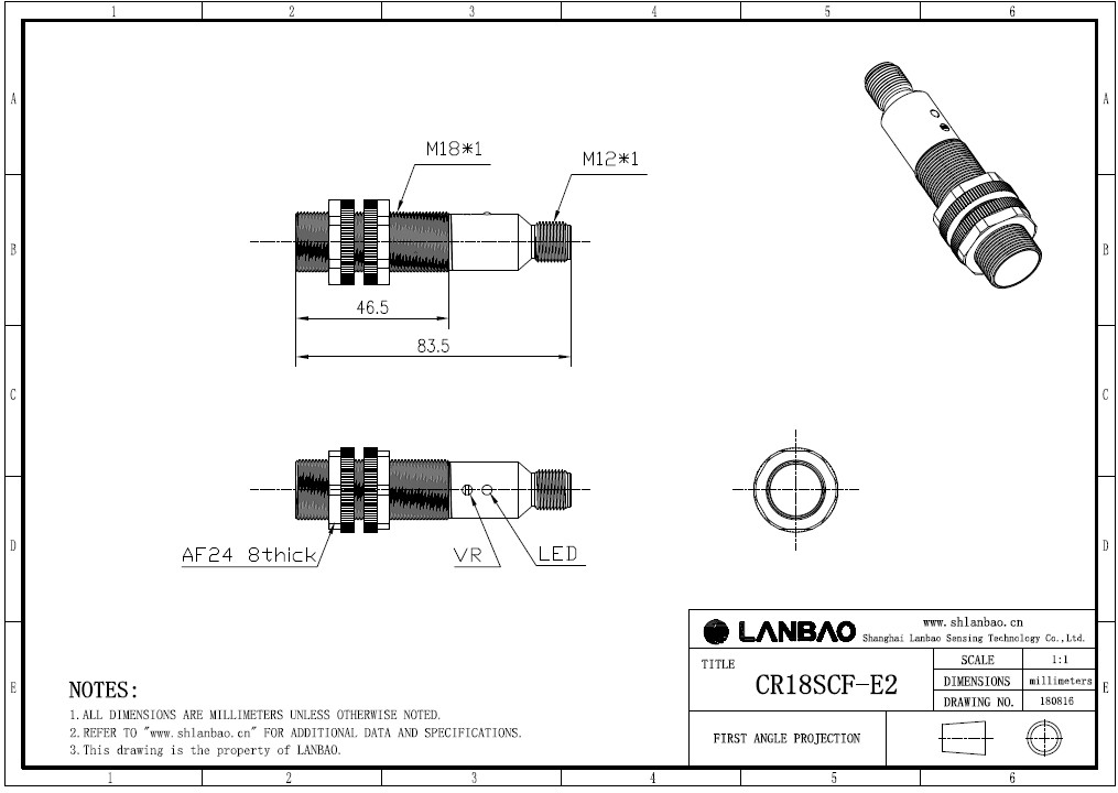 Емкостной датчик LANBAO CR18SCF05DPC-E2