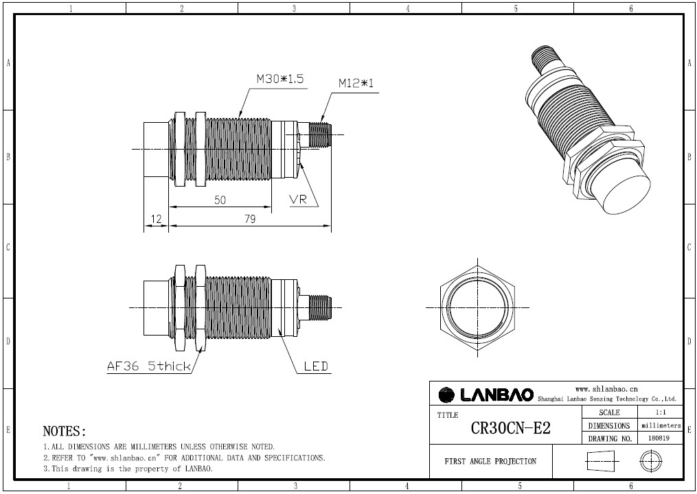 Емкостной датчик LANBAO CR30SCN15ATO-E2