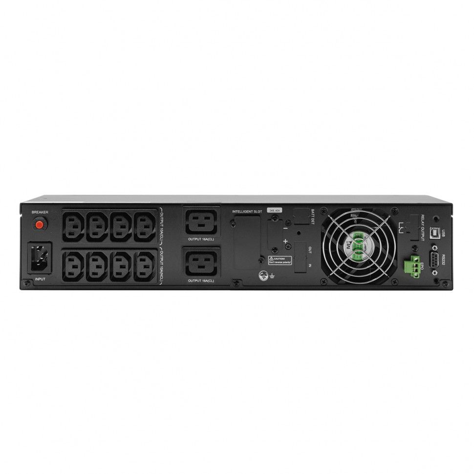ИБП с двойным преобразованием Rack Tower универсального исполнения 2U 3000 ВА / 3000 Вт встроенные АКБ в корпусе 6x9Ач, 8 розеток IEC-320 С13, 2 розетки IEC-320 С19, SNMP слот, USB, RS232, EPO