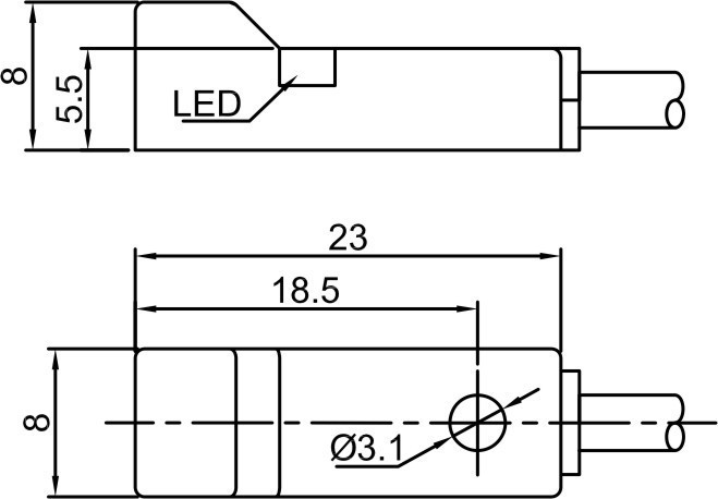| Размер прямоугольного корпуса, мм | 8x8x23 |