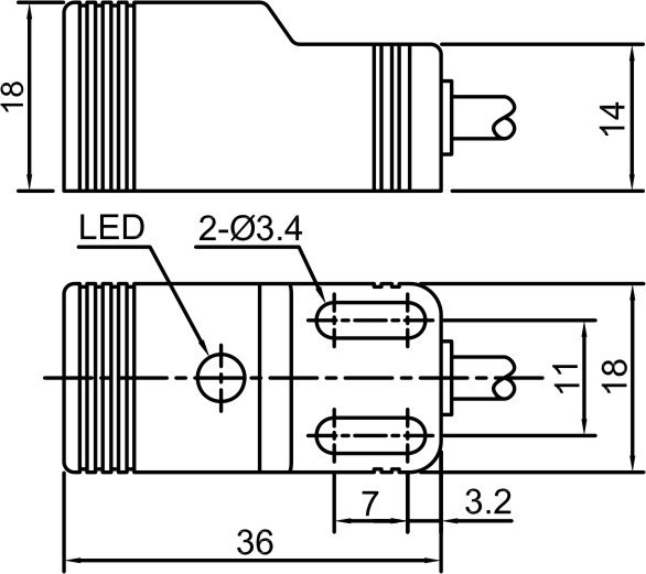 | Размер прямоугольного корпуса, мм | 18x18x36 |