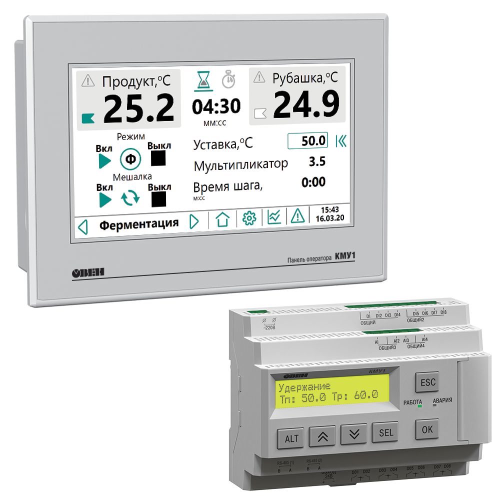 КМУ1 автоматика для управления пастеризаторами и сырными ваннами ОВЕН КМУ1-230.ВДП.Р