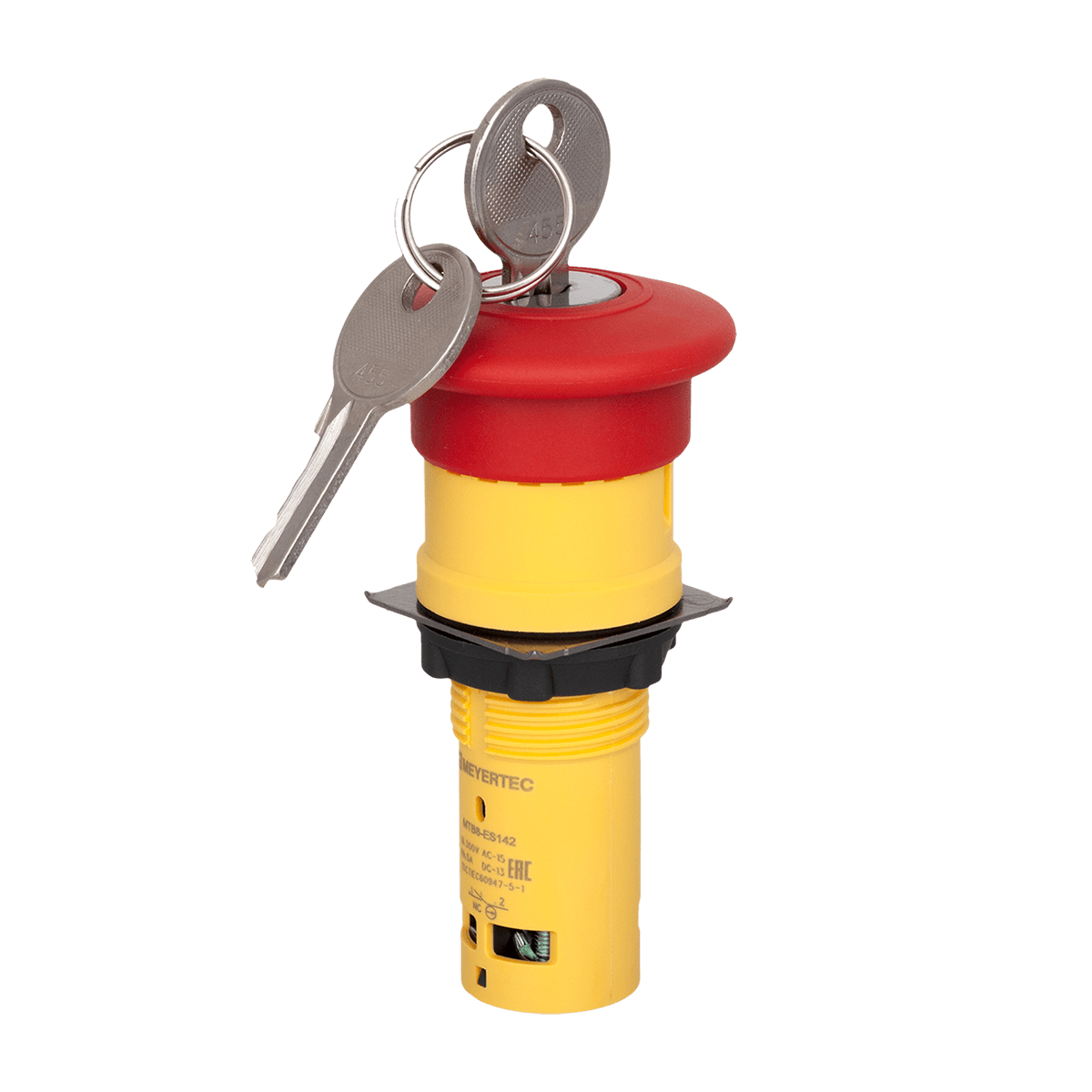Кнопка грибовидная красная с ключом, c фиксацией, 1 выемка, Ø 40 мм, 1NC, IP65, пластик Meyertec MTB8-ES142