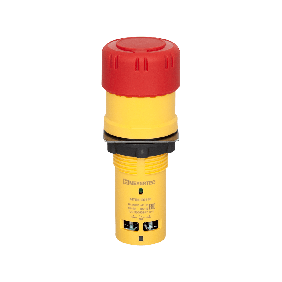 Кнопка грибовидная красная, возврат поворотом c фиксацией, Ø 30 мм, 1NO+1NC, IP65, пластик Meyertec MTB8-ES445