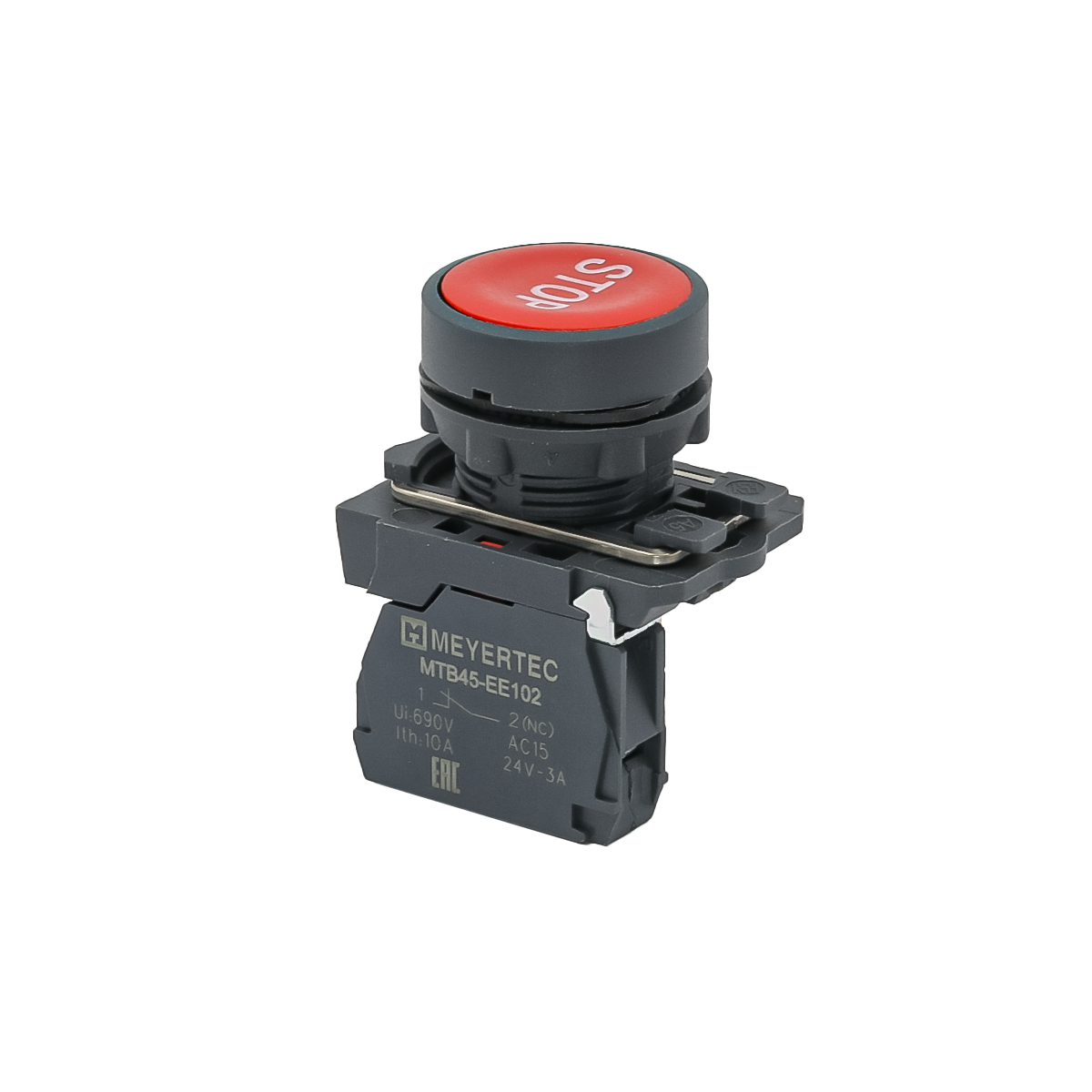 Кнопка плоская красная, маркировка "STOP", 1NС, IP65, пластик Meyertec MTB5-AA41622