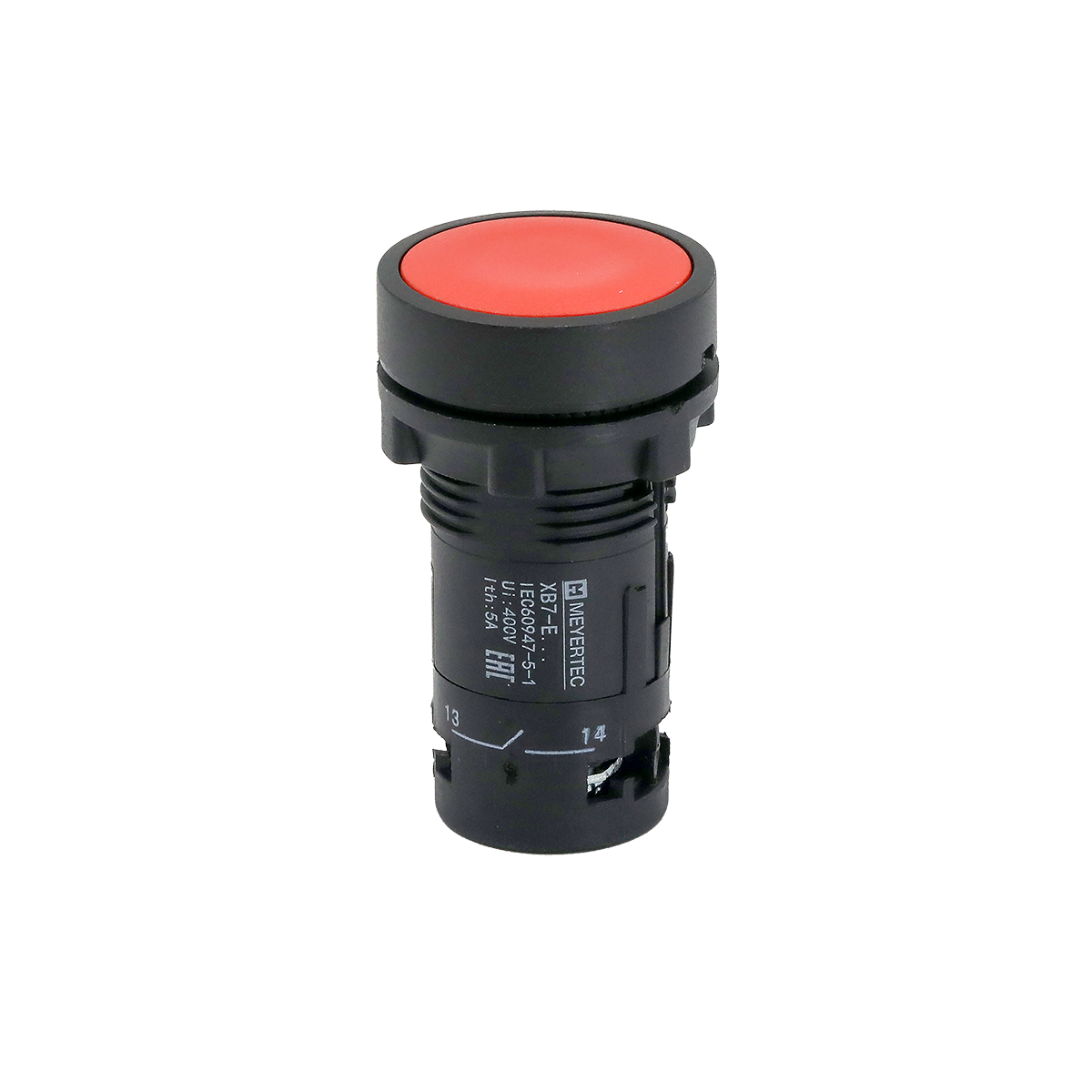 Кнопка плоская красная с фиксацией, 1NO+1NC, IP54, пластик Meyertec MTB7-EH45
