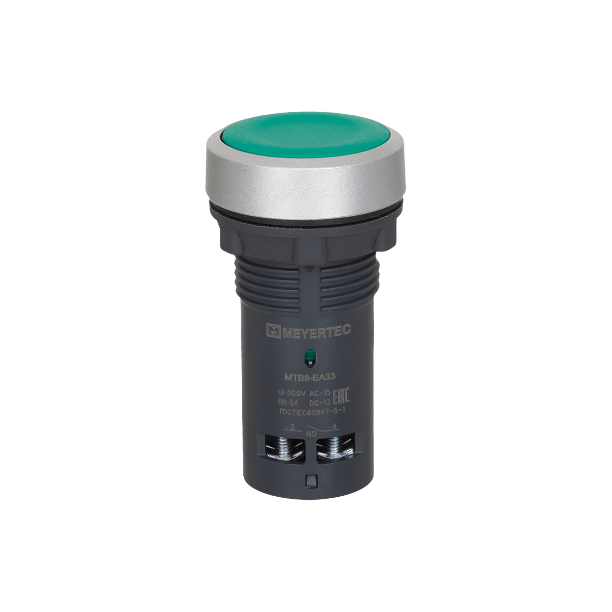 Кнопка плоская зеленая, 2NO, IP65, пластик Meyertec MTB8-EA33