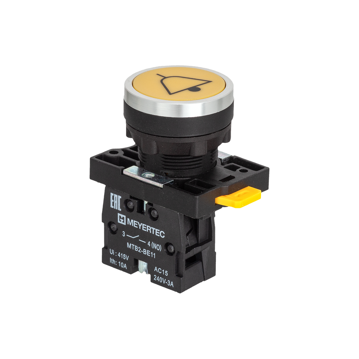 Кнопка плоская желтая, маркировка "ЗВОНОК", 1NO, IP54, пластик Meyertec MTB2-EA52711