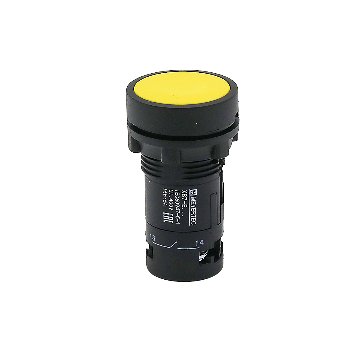 Кнопка плоская желтая с фиксацией, 1NO+1NC, IP54, пластик Meyertec MTB7-EH55