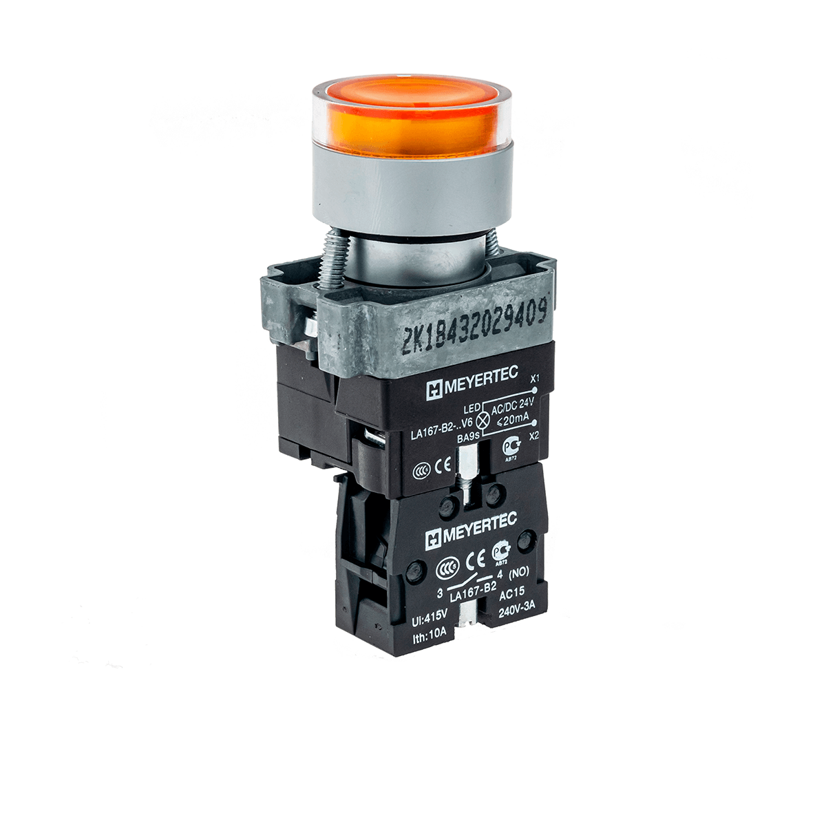 Кнопка с подсветкой желтая 24V 1NO Meyertec MTB2-BW3561