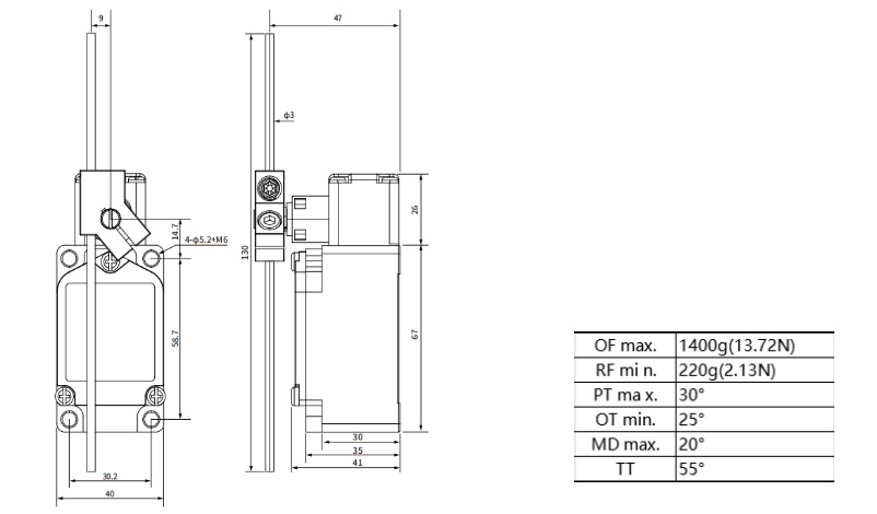 | Размер прямоугольного корпуса, мм | 93x41x40 |