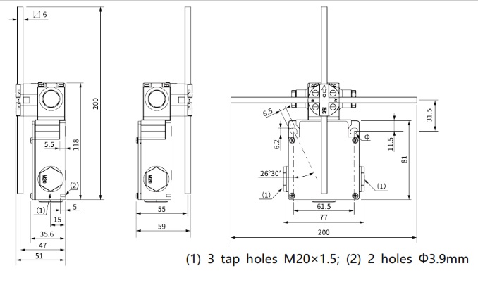 | Размер прямоугольного корпуса, мм | 200x59x200 |
