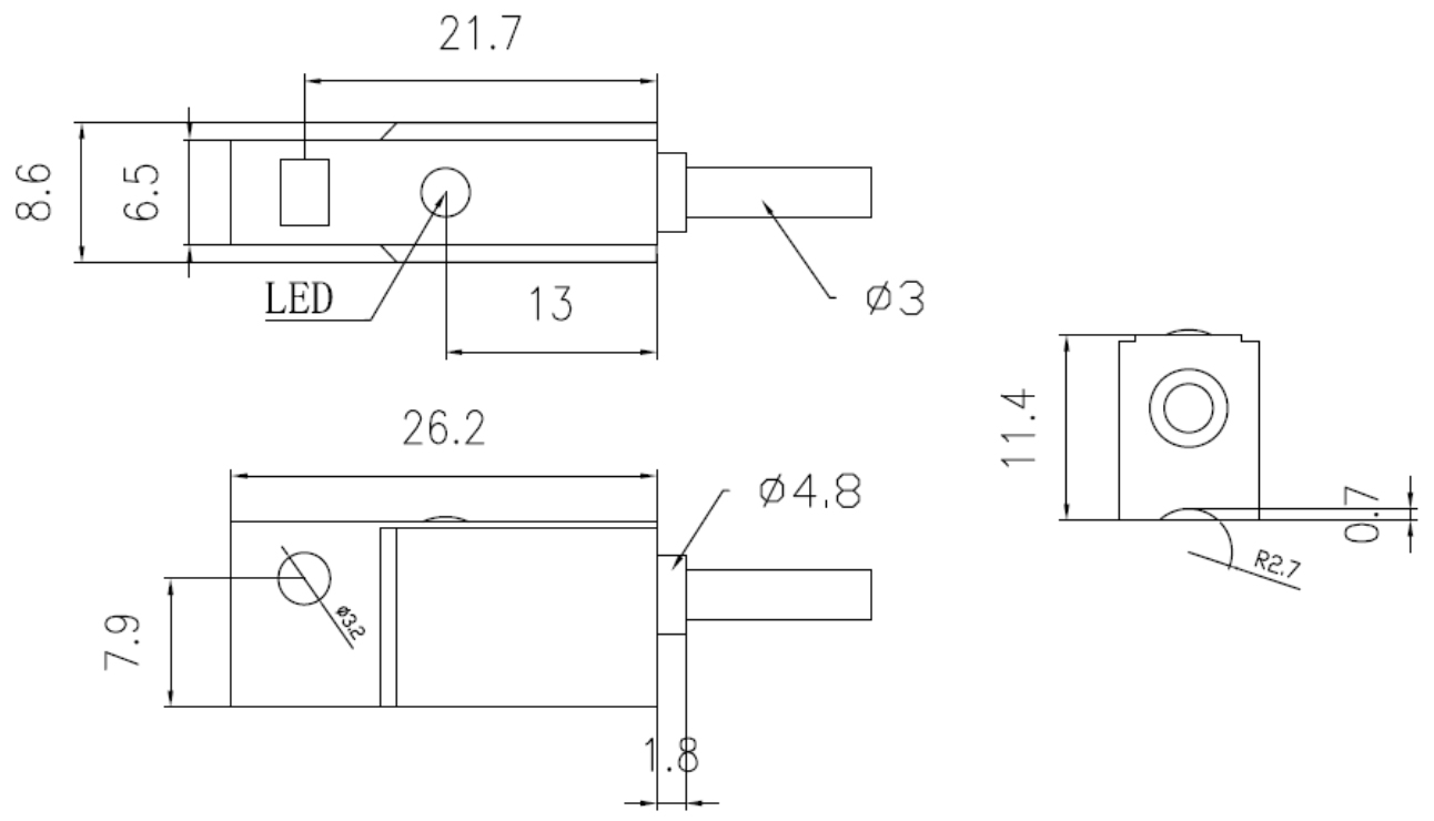 | Размер прямоугольного корпуса, мм | 8,6x11,4x26,2 |