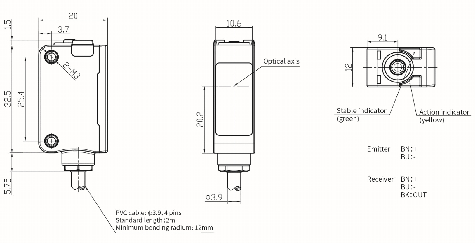 | Размер прямоугольного корпуса, мм | 32,5x20x12 |