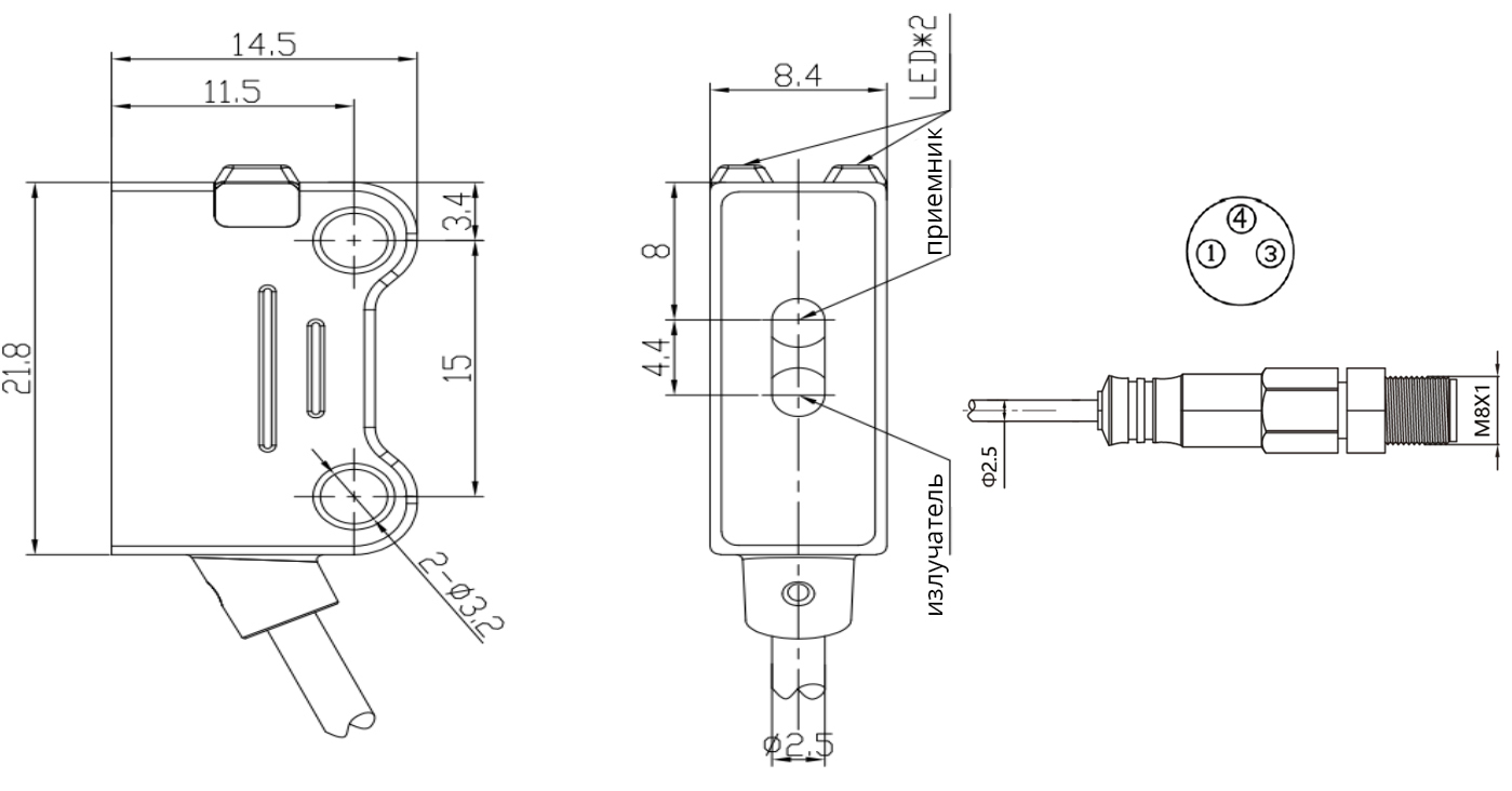 | Размер прямоугольного корпуса, мм | 14,5x8,4x21,8 |