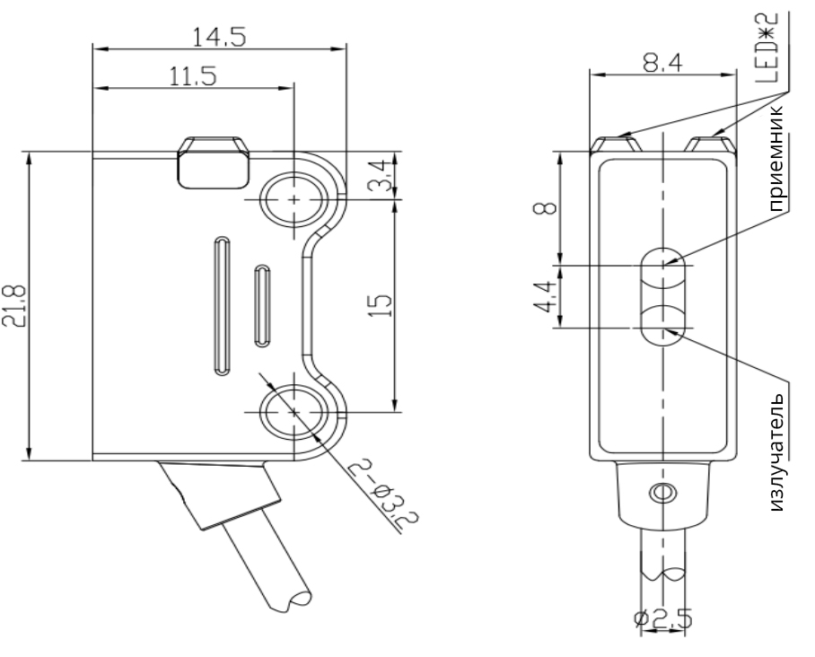 | Размер прямоугольного корпуса, мм | 14,5x8,4x21,8 |