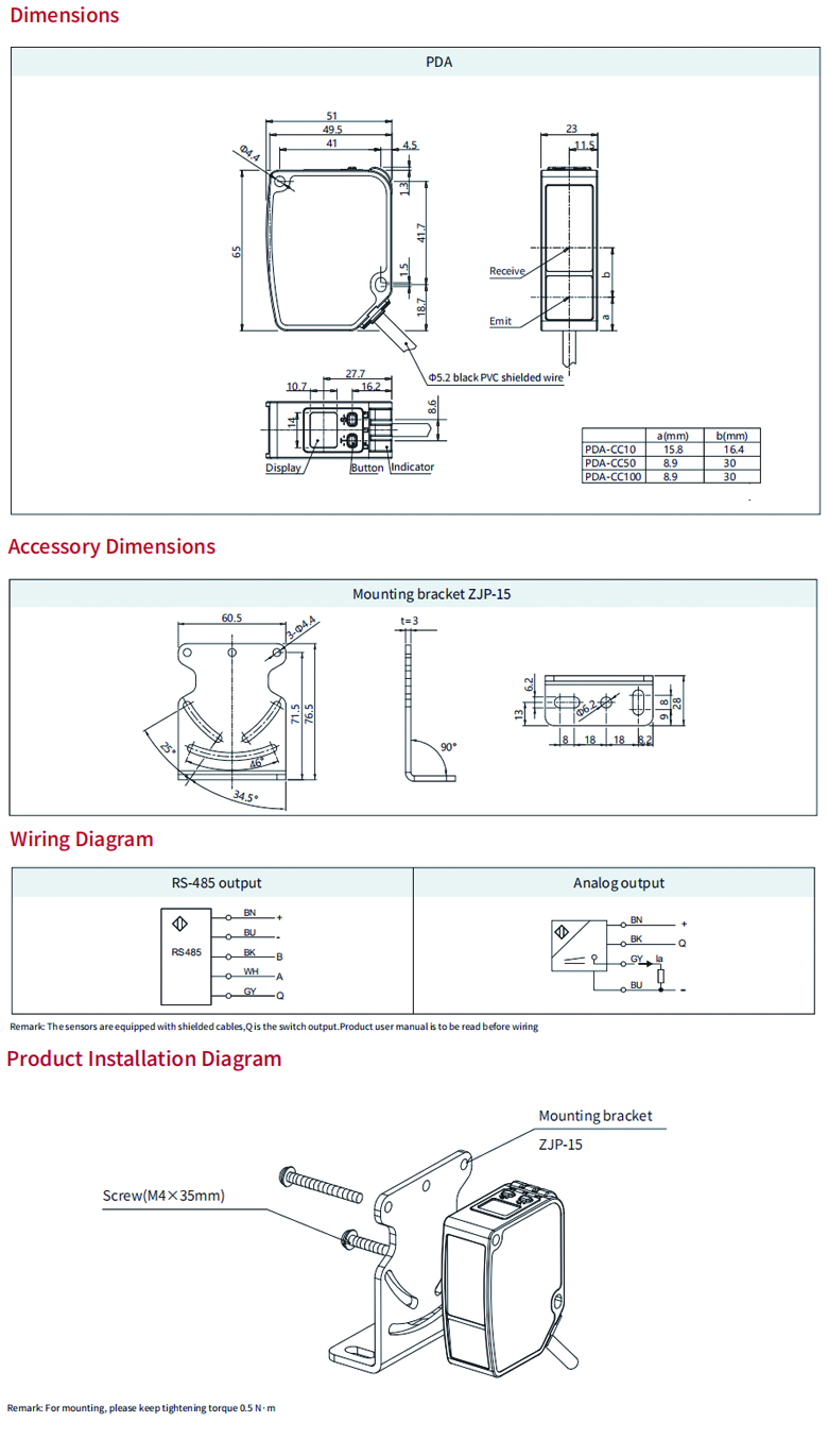 Оптический датчик расстояния LANBAO PDA-CC100DGR