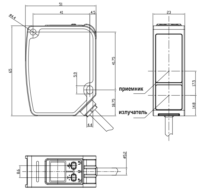 | Размер прямоугольного корпуса, мм | 65x51x23 |
