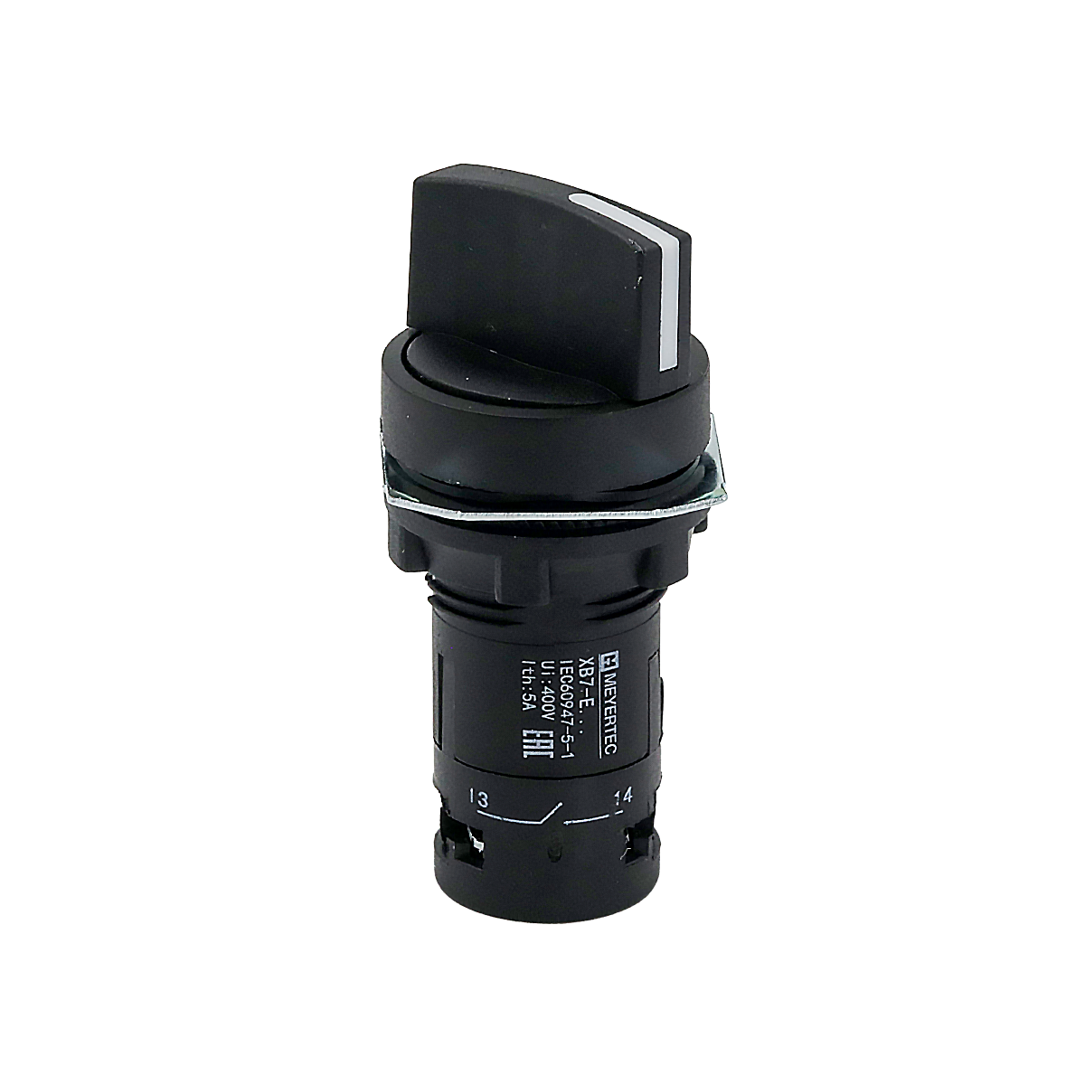 Переключатель на 2 положения, с фиксацией, короткая ручка, 1NO+1NC, IP54, пластик Meyertec MTB7-ED25