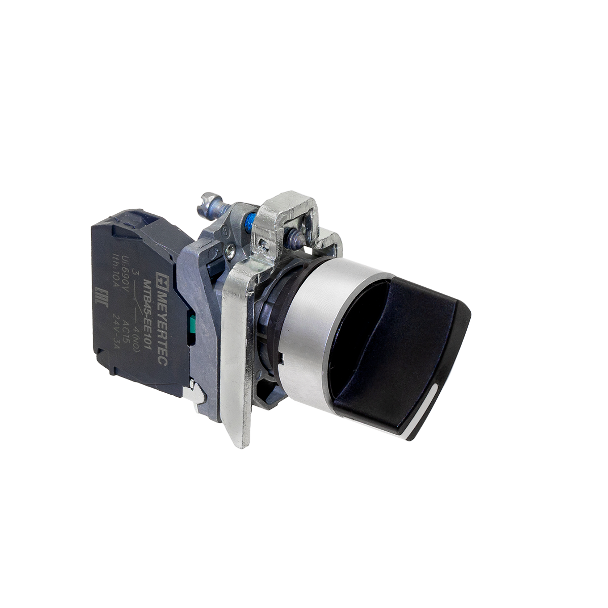 Переключатель на 2 положения с фиксацией, короткая ручка, 1NO, IP65, металл Meyertec MTB4-BD21