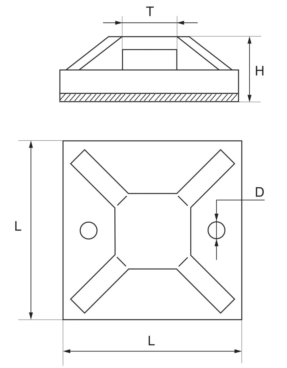 Площадки предназначены для безвинтового крепления кабельных хомутов к поверхности установки.