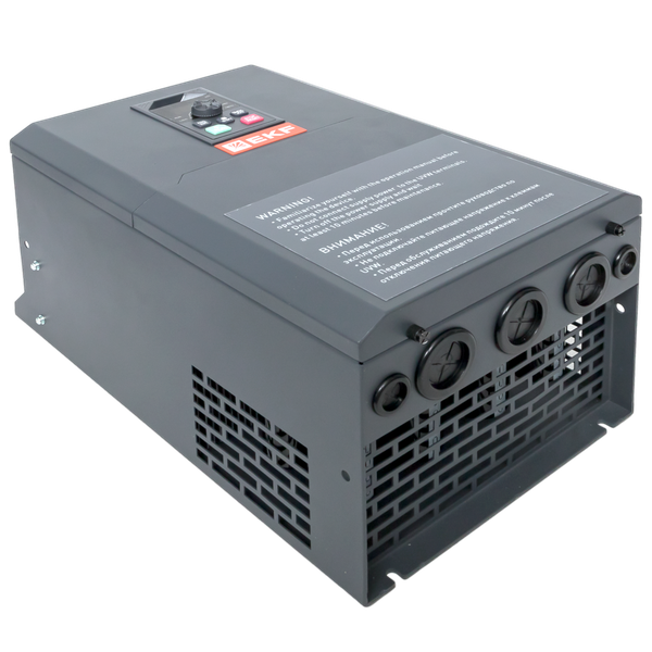 Преобразователь частоты PRO-Drive 150 EKF (далее преобразователь) предназначен для управления скоростью вращения электродвигателей, применяемых в широком спектре промышленного оборудования. Преобразователь обеспечивает точное поддержание скорости вращения или момента на валу двигателя в зависимости от внешних факторов. Преобразователи соответствуют требованиям ГОСТ IEC 61800-5-1, ГОСТ IEC 61800-3.