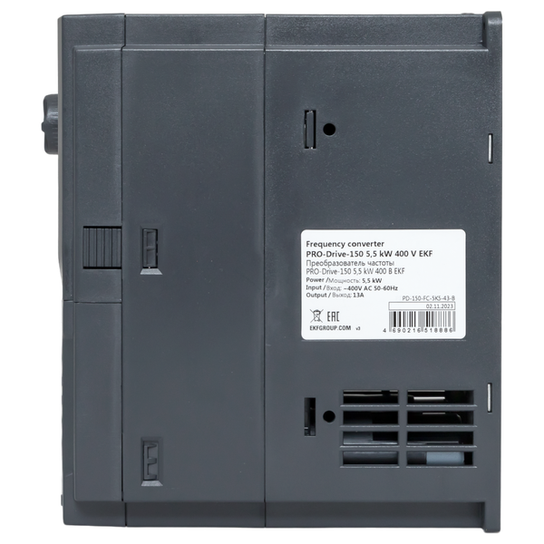 Преобразователь частоты PRO-Drive 150 EKF (далее преобразователь) предназначен для управления скоростью вращения электродвигателей, применяемых в широком спектре промышленного оборудования. Преобразователь обеспечивает точное поддержание скорости вращения или момента на валу двигателя в зависимости от внешних факторов. Преобразователи соответствуют требованиям ГОСТ IEC 61800-5-1, ГОСТ IEC 61800-3.