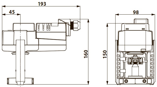 Ход штока определяется механически на кронштейне со специальными накладками. Диапазон хода настраивается автоматически во время работы.