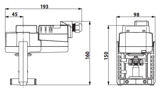 Электропривод защищен от перегрузки, не требует концевых выключателей и автоматически останавливается по достижению конечных положений.