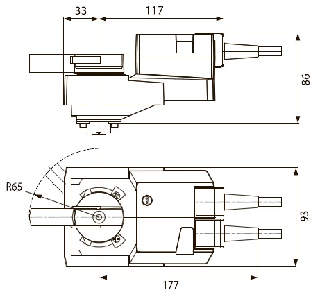 Угол поворота настраивается при помощи механических упоров.