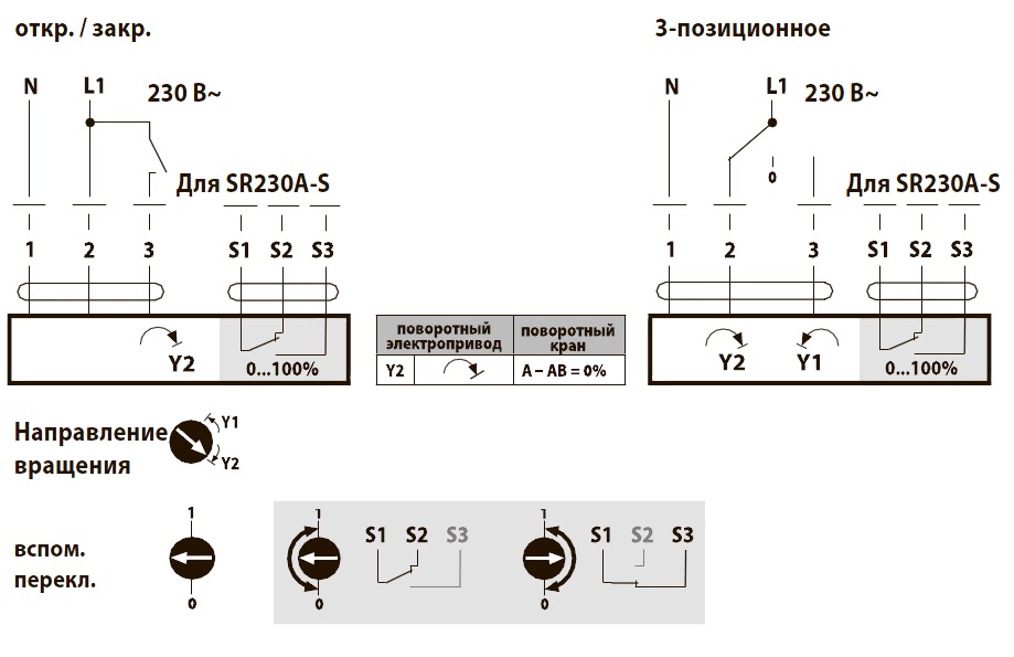 • Управление: откр./закр. , трехпозиционное управление