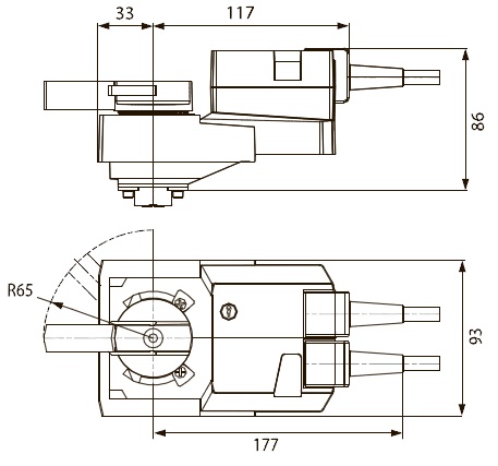 Угол поворота настраивается при помощи механических упоров.