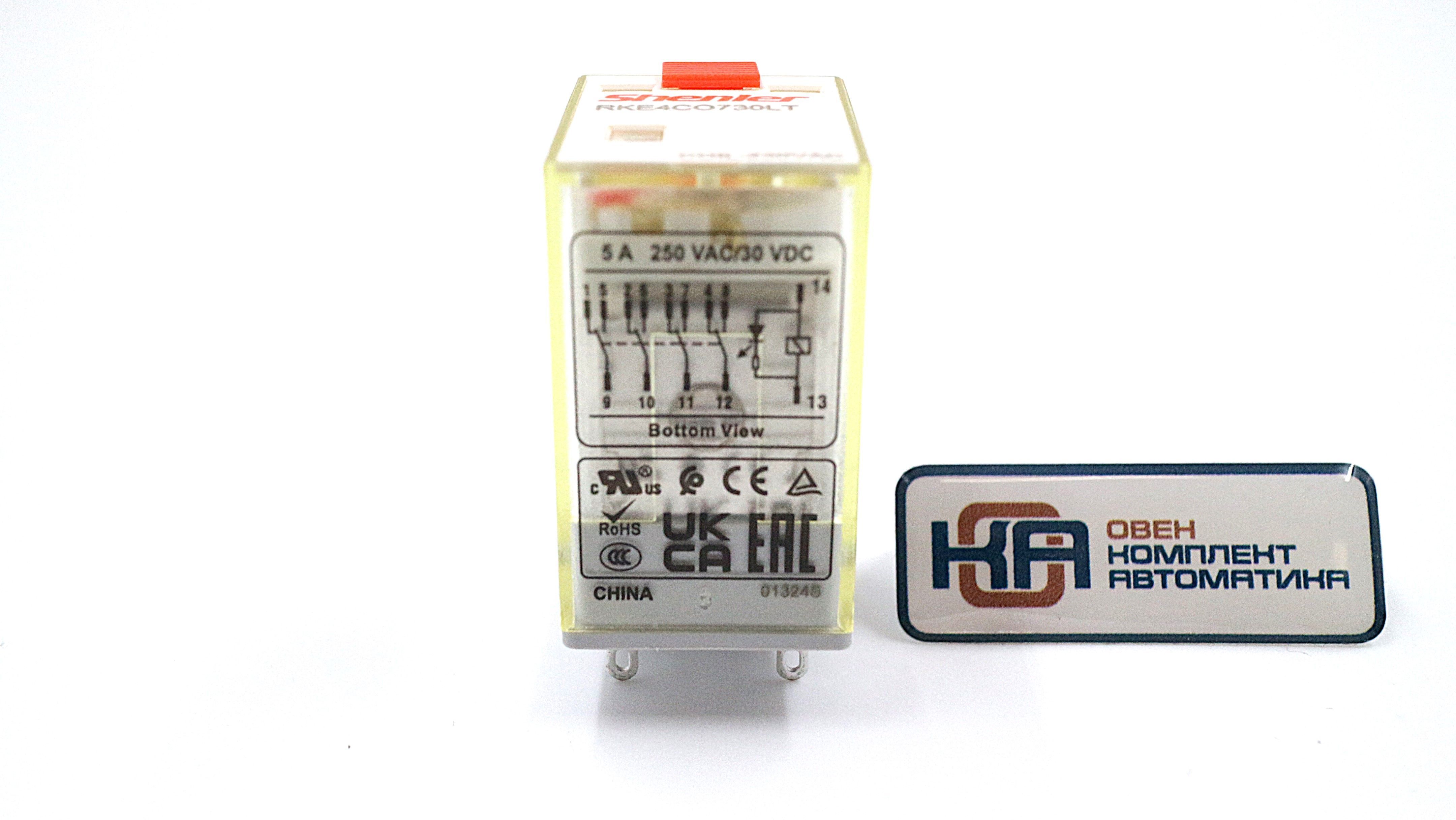 Промежуточное реле Shenler RKE4CO730LT 4CO 5A 230VAC - миниатюрный размер, высокая чувствительность. Реле имеет широкий диапазон вариантов и доступных опций. 4-х контактный с нагрузкой 5 А, переменный ток с напряжением управления 230VAC