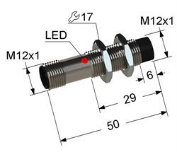 Индуктивный,М12,L-50мм,Sn 8мм,не заподлицо,NPN-NO,10-30VDC,разъем 4pinM12