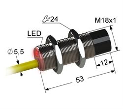 Индуктивный,М18,L-53мм,Sn 12мм,не заподлицо,PNP-NO+NC,10-30VDC,кабель