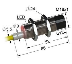 Индуктивный,М18,L-68мм,Sn 12мм,не заподлицо,NPN-NO,10-30VDC,штуцер-кабель